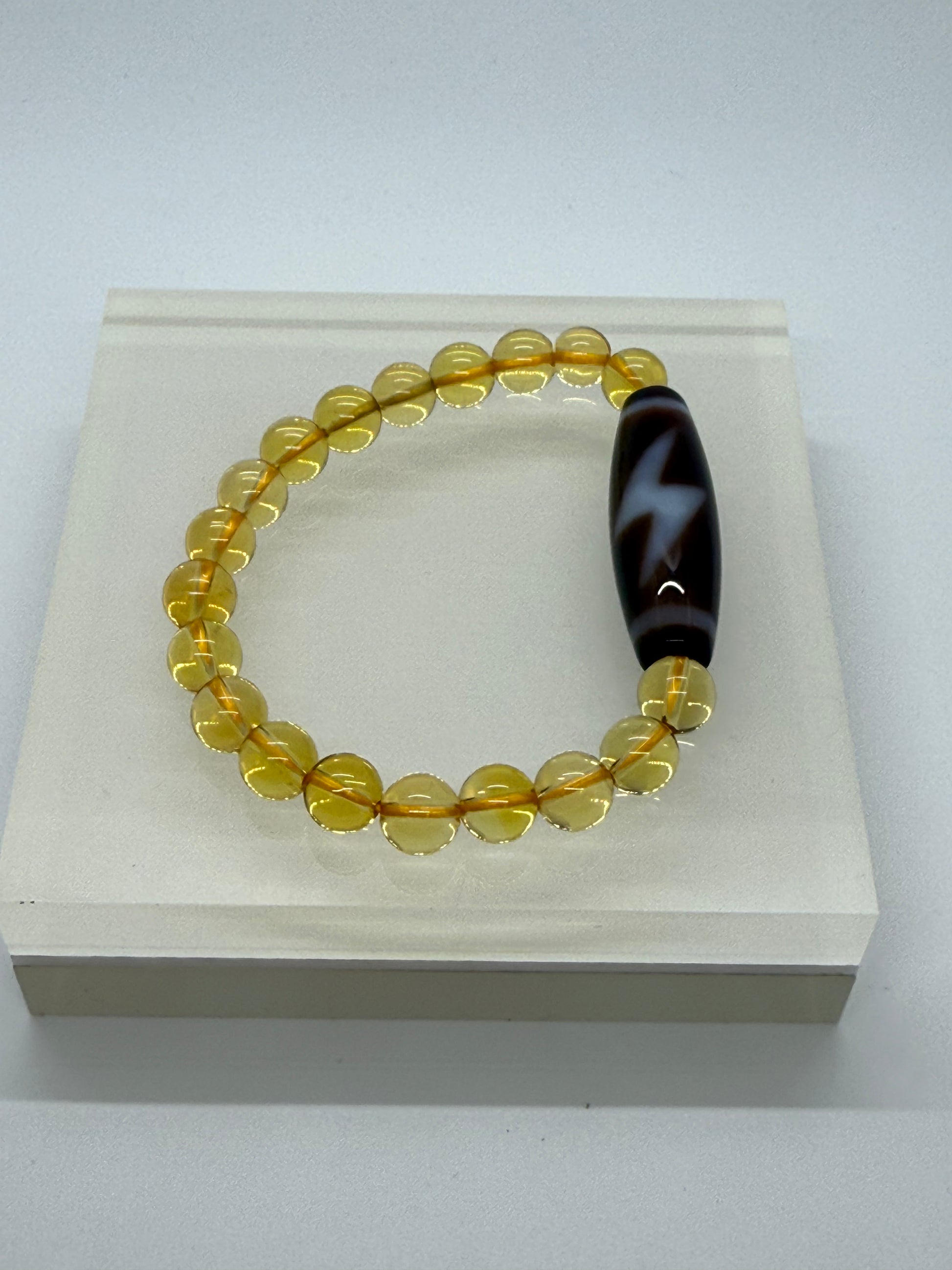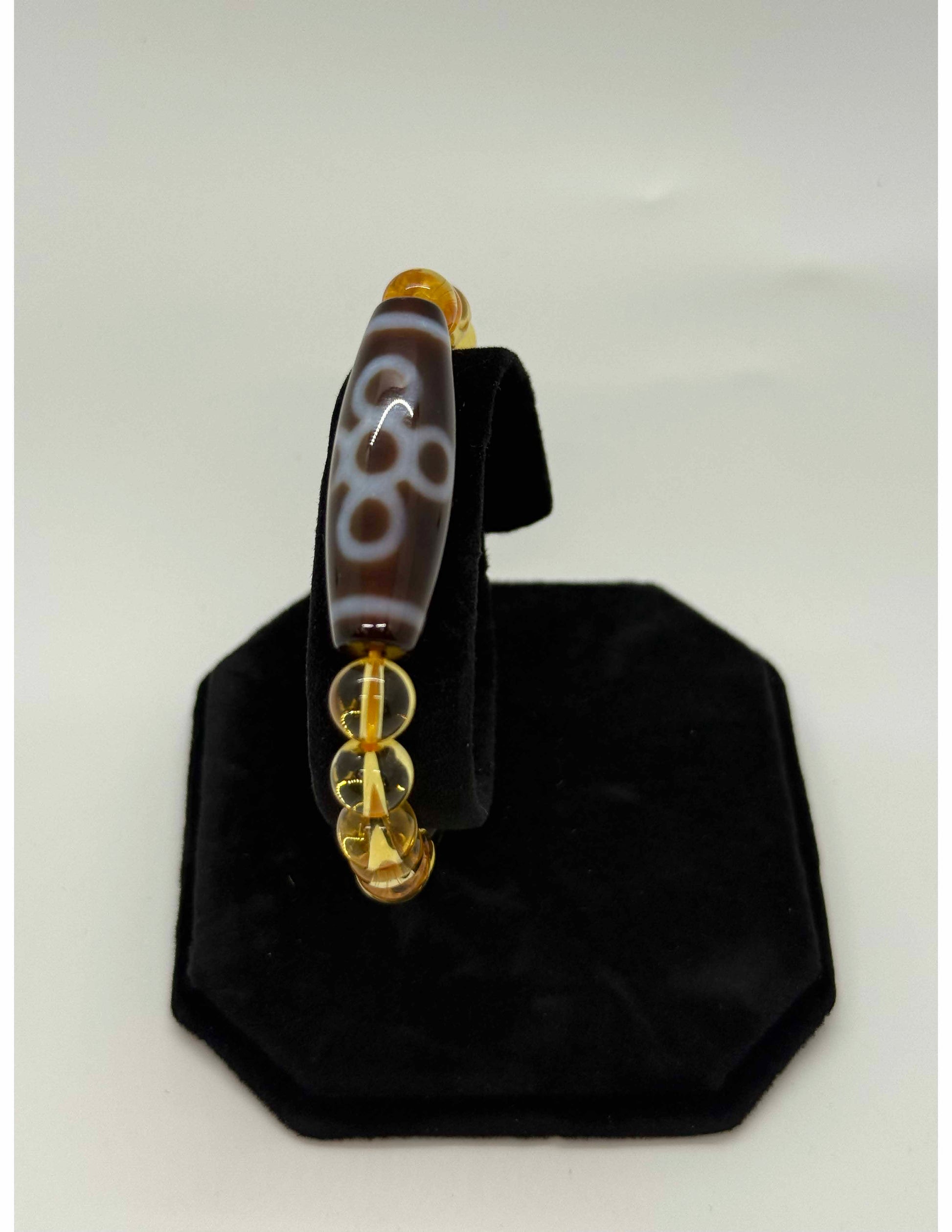 10084 - Five Eyed Lighting Dzi Bead With 8mm Yellow Citrine Bracelet