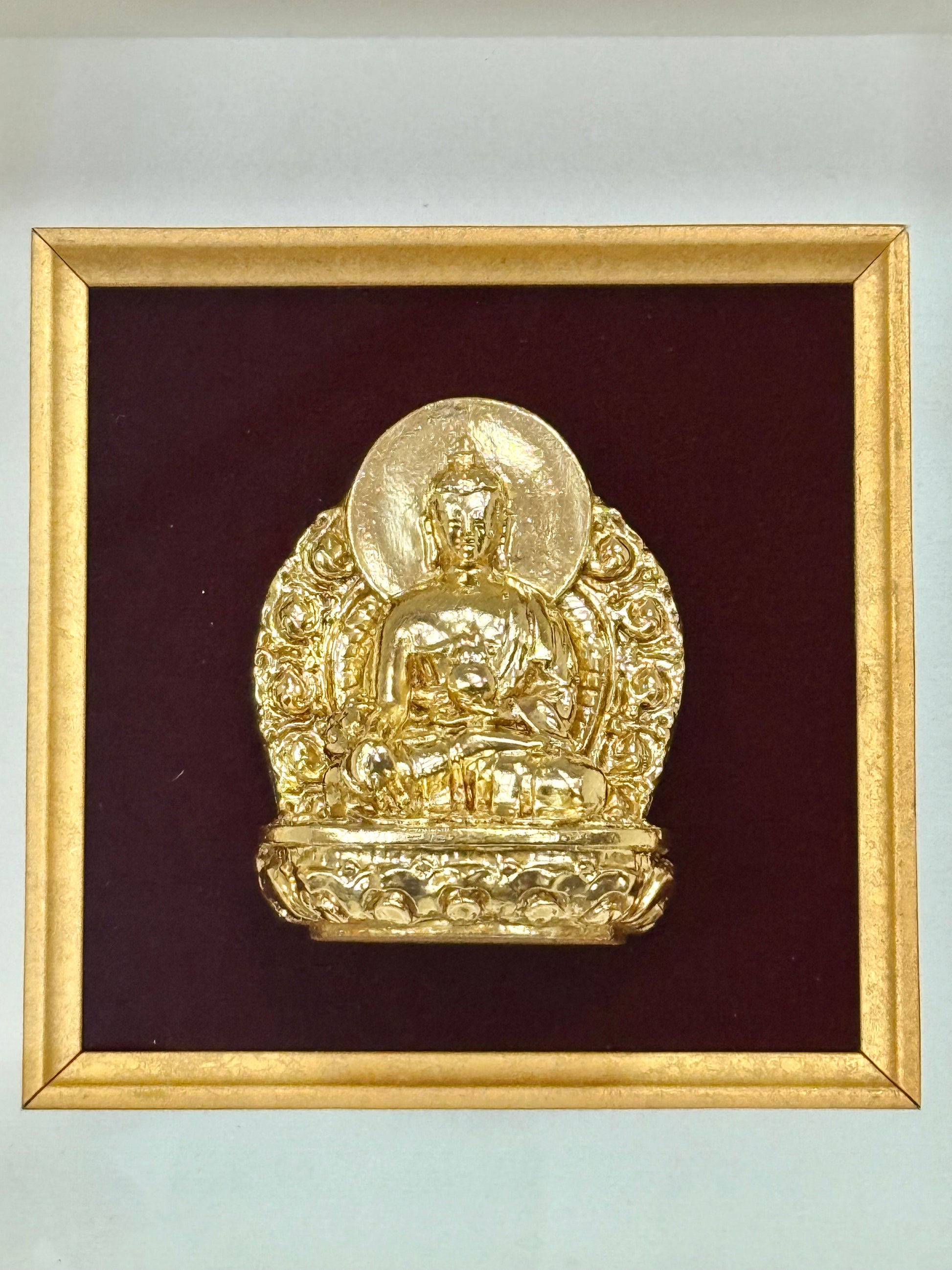 This wonderful Buddha frame, featuring the Medicine Buddha, brings blessings of good health and longevity. Wards off sickness vibes and helps one recover quickly and thoroughly when they are not well.