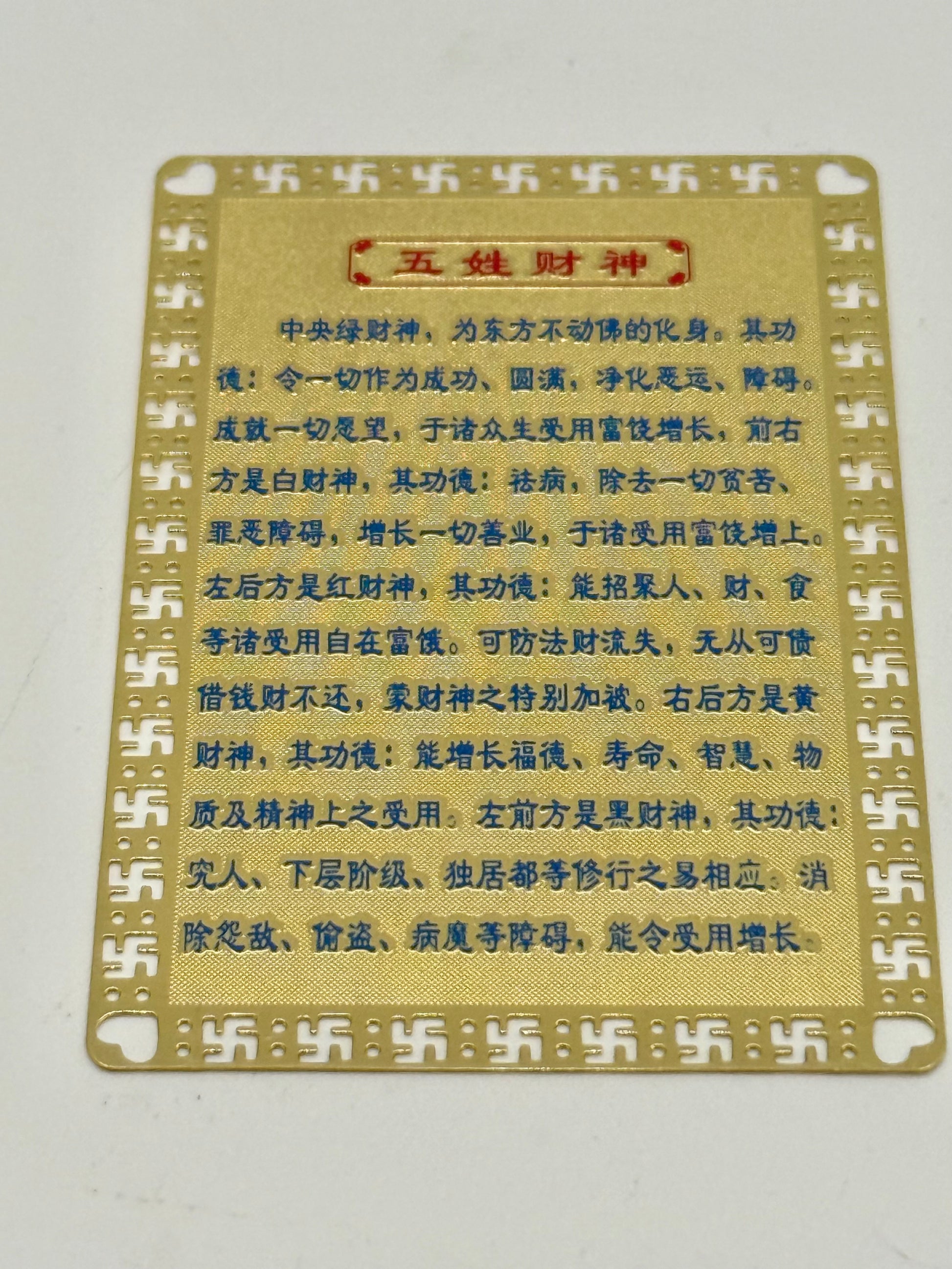 14221 - Five Dzambala Talisman Gold Card for Wealth