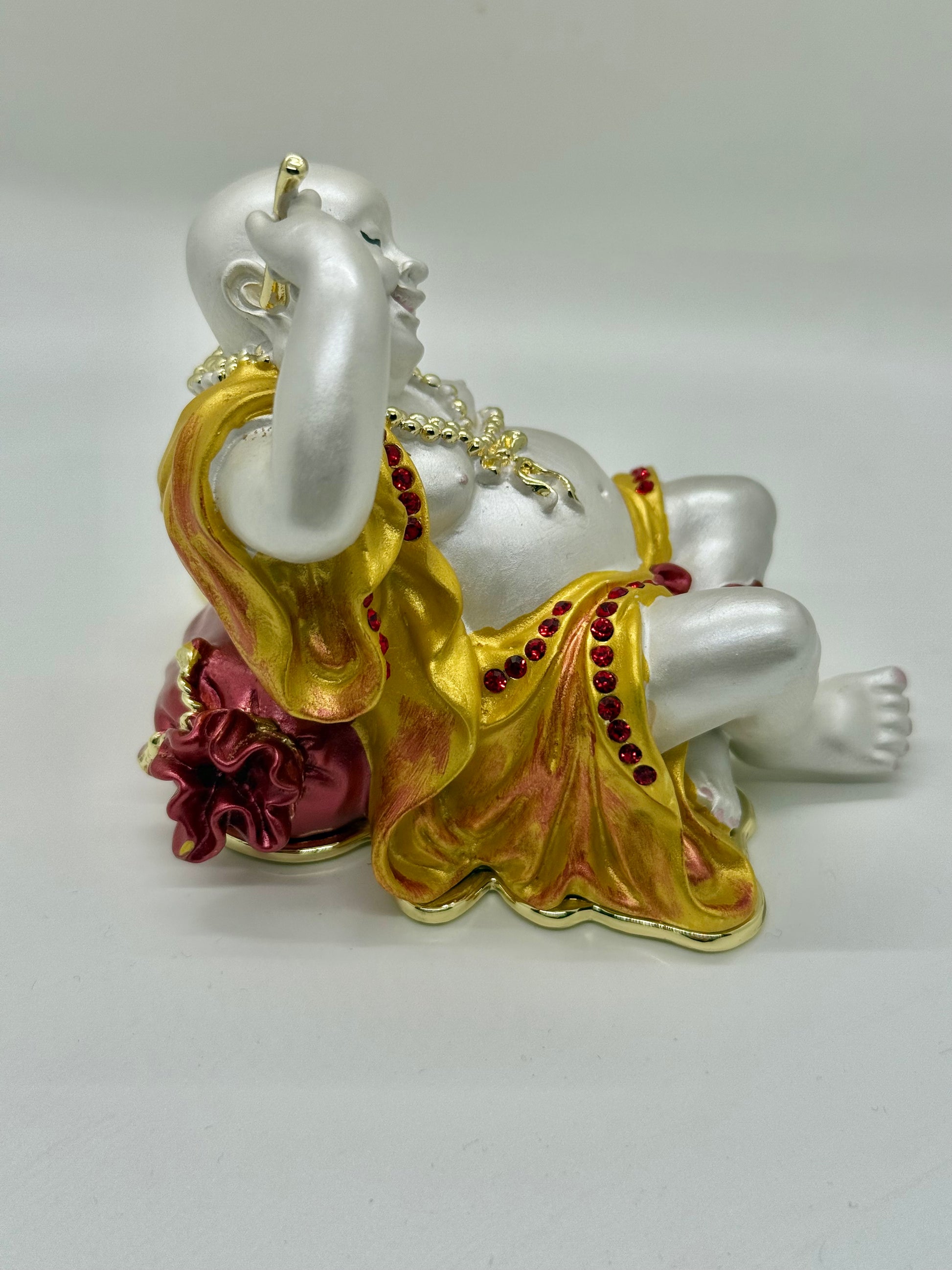The Happy Buddha, also known as the Laughing Buddha, is the Buddha of Wealth and the Buddha of Happiness. He is one of the most beloved Buddha images, and his laughing form is seen in Chinese homes, offices, and restaurants worldwide. His image is believed to bring prosperity luck, and here,