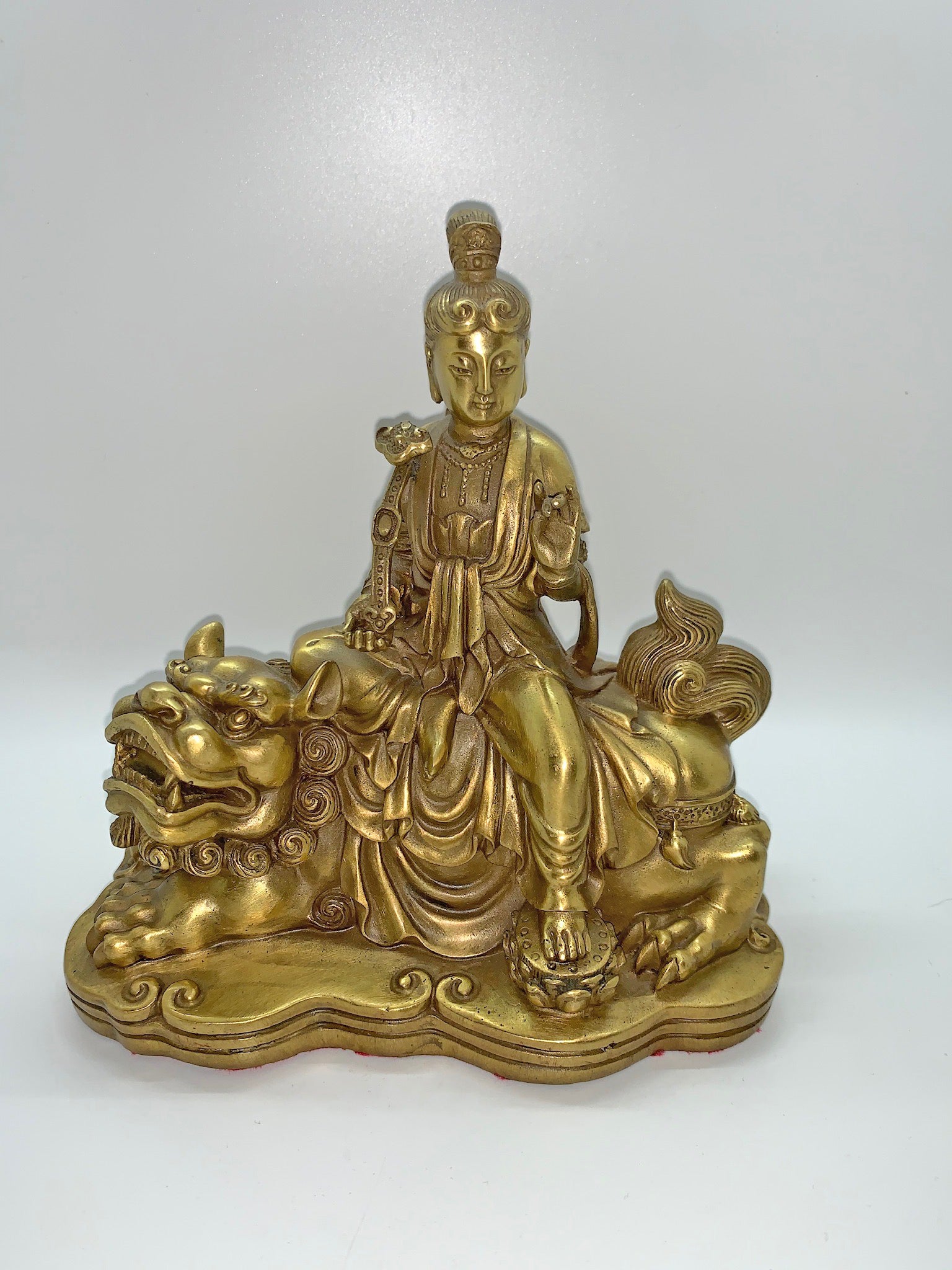 15133 - Manjushri Sitting On Snow Lion and Holding Ru Yi