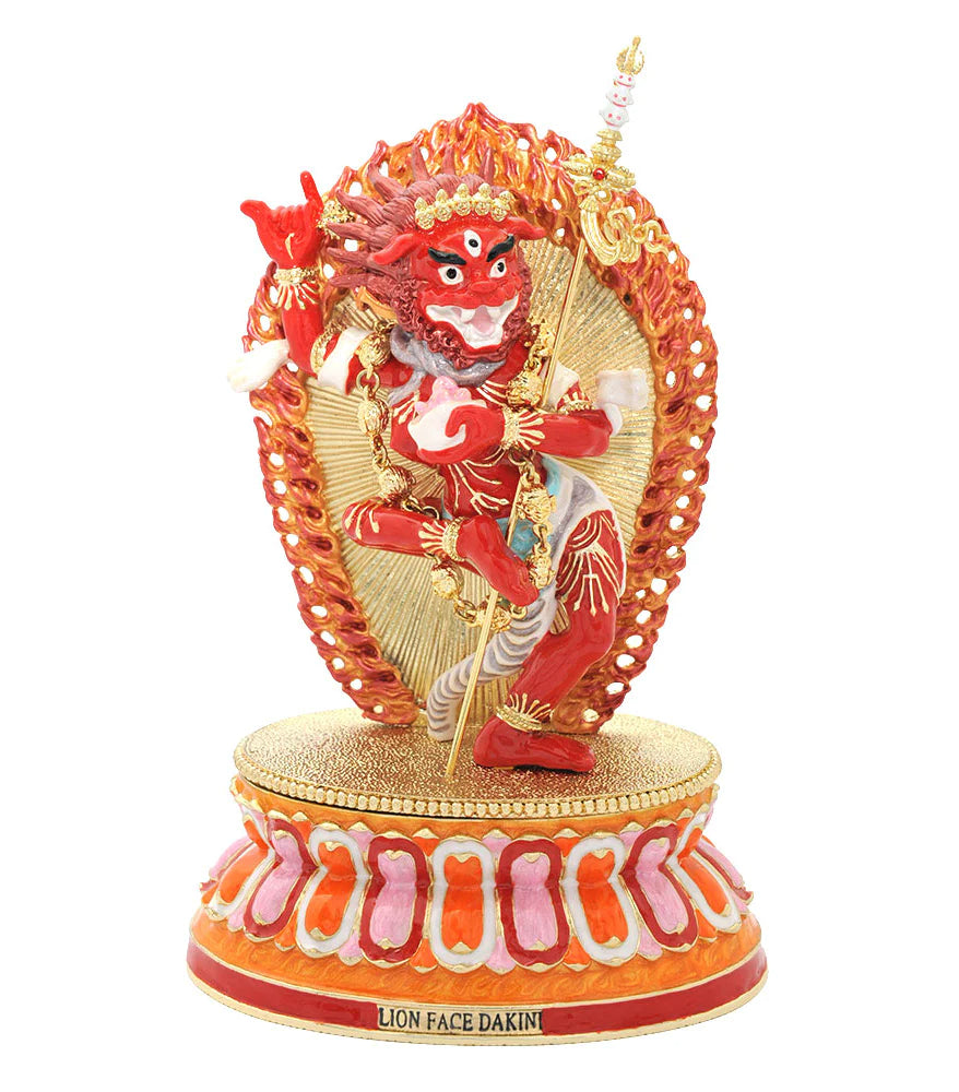 The Lion-faced Dakini is the Queen of all the Dakinis. Hence, she is all-powerful at dispelling all obstacles in your life. She clears away every obstacle that stands in the way of your happiness as she has the power to dispel all negativities from the spirit realm as well as problems or obstacles from the modern world. As the Queen of the Dakinis, when you invite her into your home, all you need to do is clap your hands while chanting her mantra seven times to quickly dispel all of your problems.