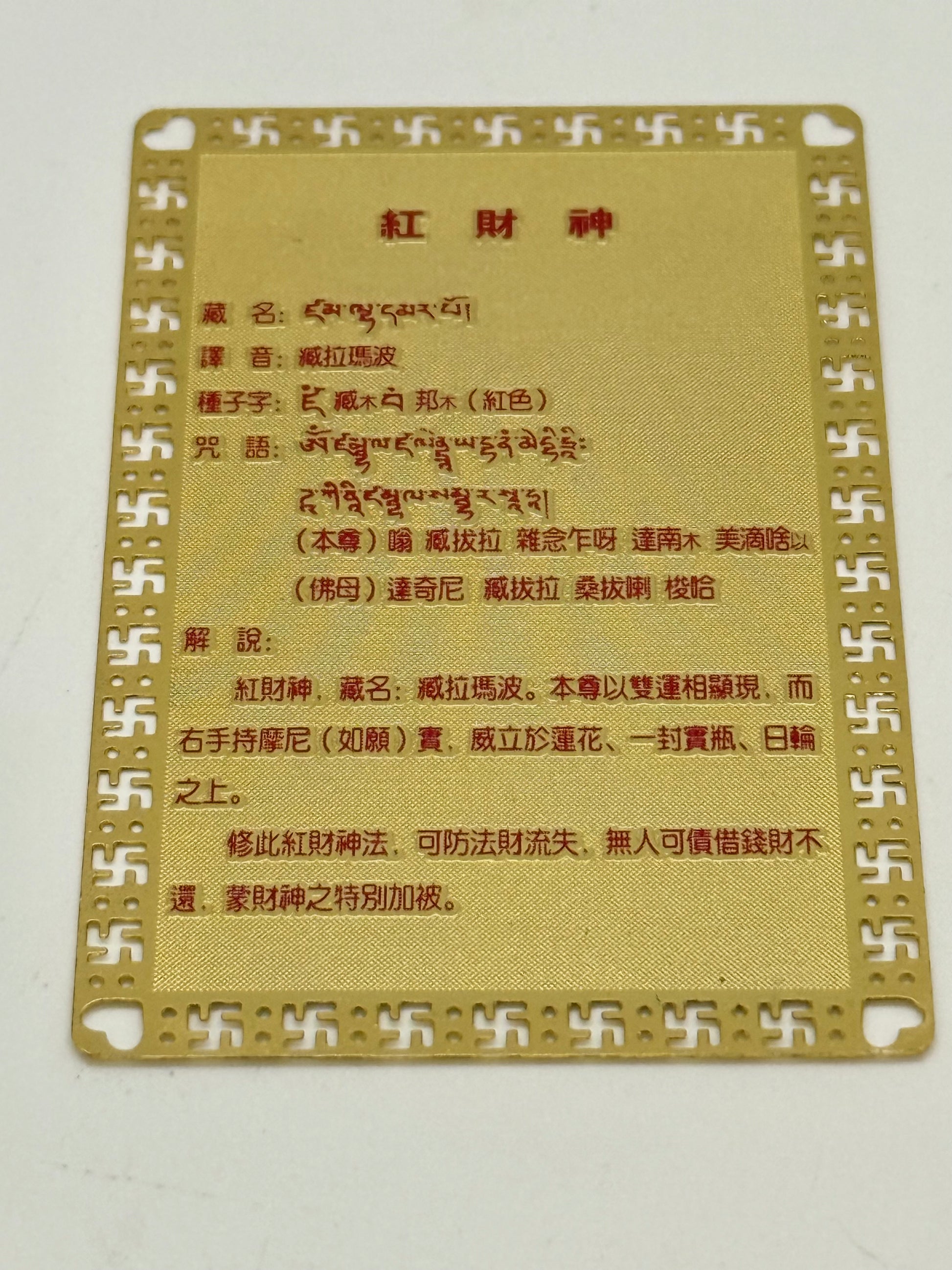 16231 - Red Dzambala Talisman Gold Card for Wealth