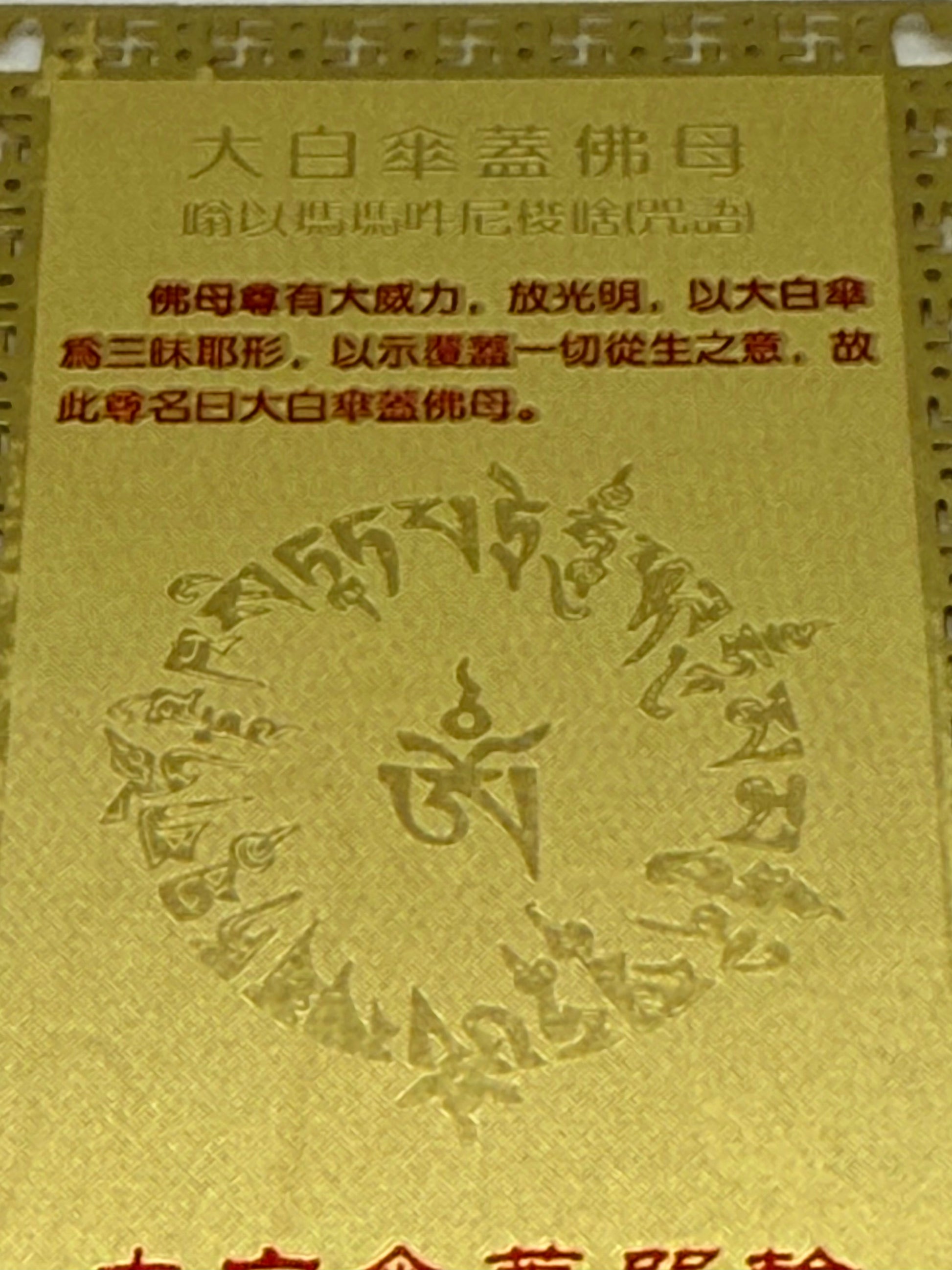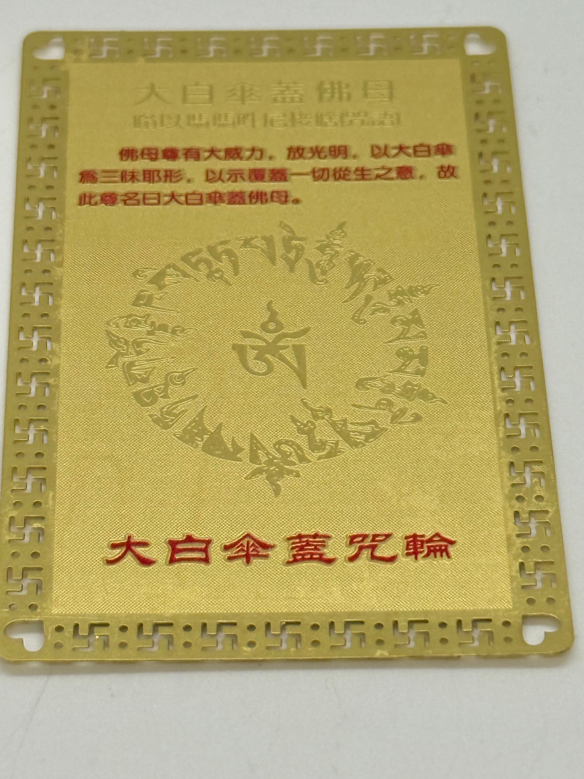 The White Umbrella Goddess, also known as Sitatapatra, is a powerful goddess who protects us all from harm. She carries the victorious parasol that shields us from catastrophes, diseases, spirit harm, and misfortune. Her mantra offers protection against those who wish to harm you. This amulet is ideal for those living in areas prone to natural disasters and for frequent travelers.
