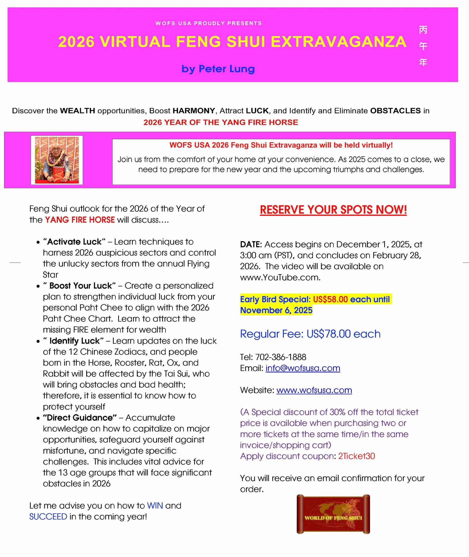 2026 Virtual Feng Shui Extravaganza - Year of the Horse (Early Bird Special)