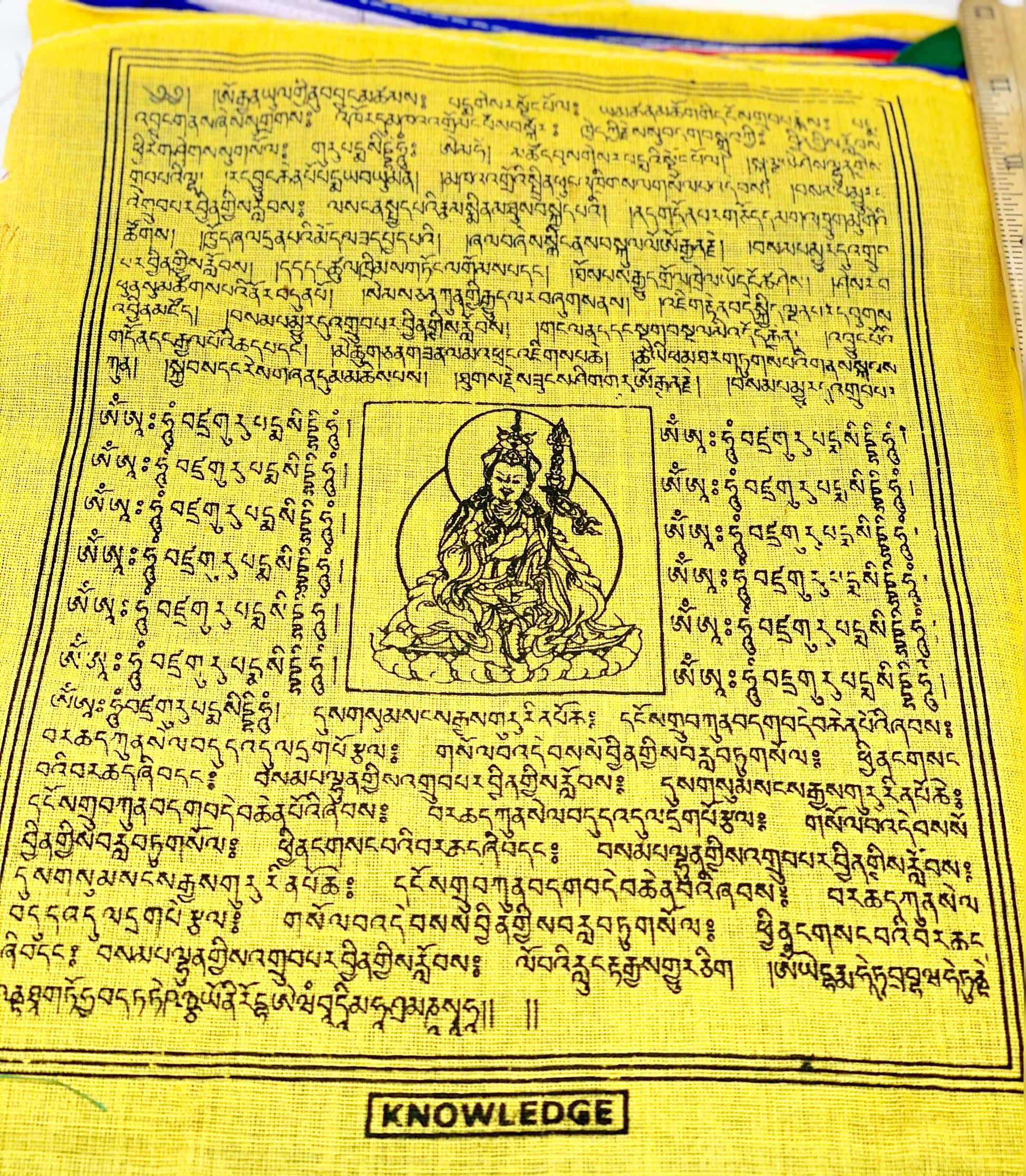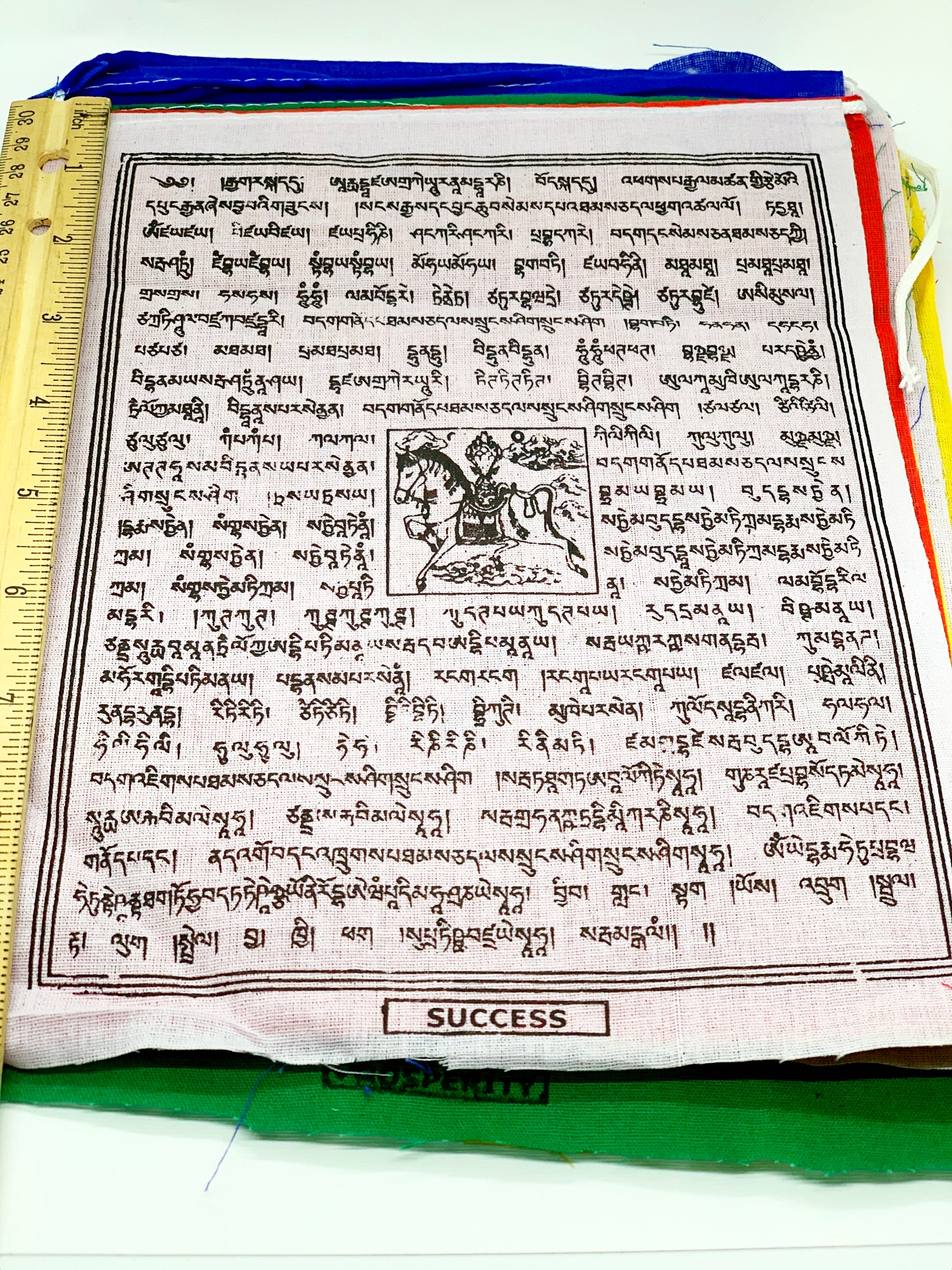 Increase your personal success luck, blessings and protection by raising the Assorted Buddha and Wind Horse prayer flag! Each flag is printed with the image of the Windhorse, Green Tara, Guru Rinpoche, Medicine Buddha, and Avalokiteshvara and special mantras to elevate your success potential. Select an auspicious day for raising prayer flags. Each pack contains five different colored flags with 25 flags.