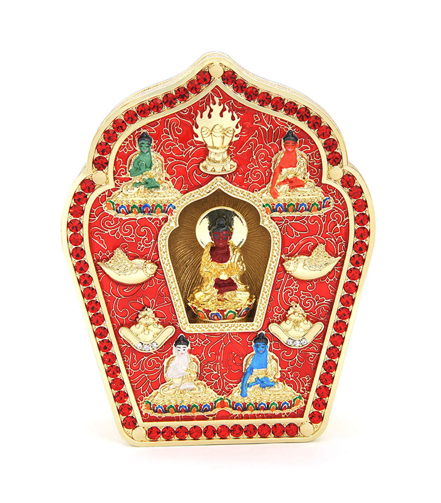 This "Gau" contains Amitabha’s mantra "Om Ami Dewa Hrih," and he is shown together with the other 4 of the 5 Dhyani Buddhas as well as their mantras to bring complete luck and protection. Invite this Gau into your home to keep all the family safe from harm of any kind during these uncertain times.