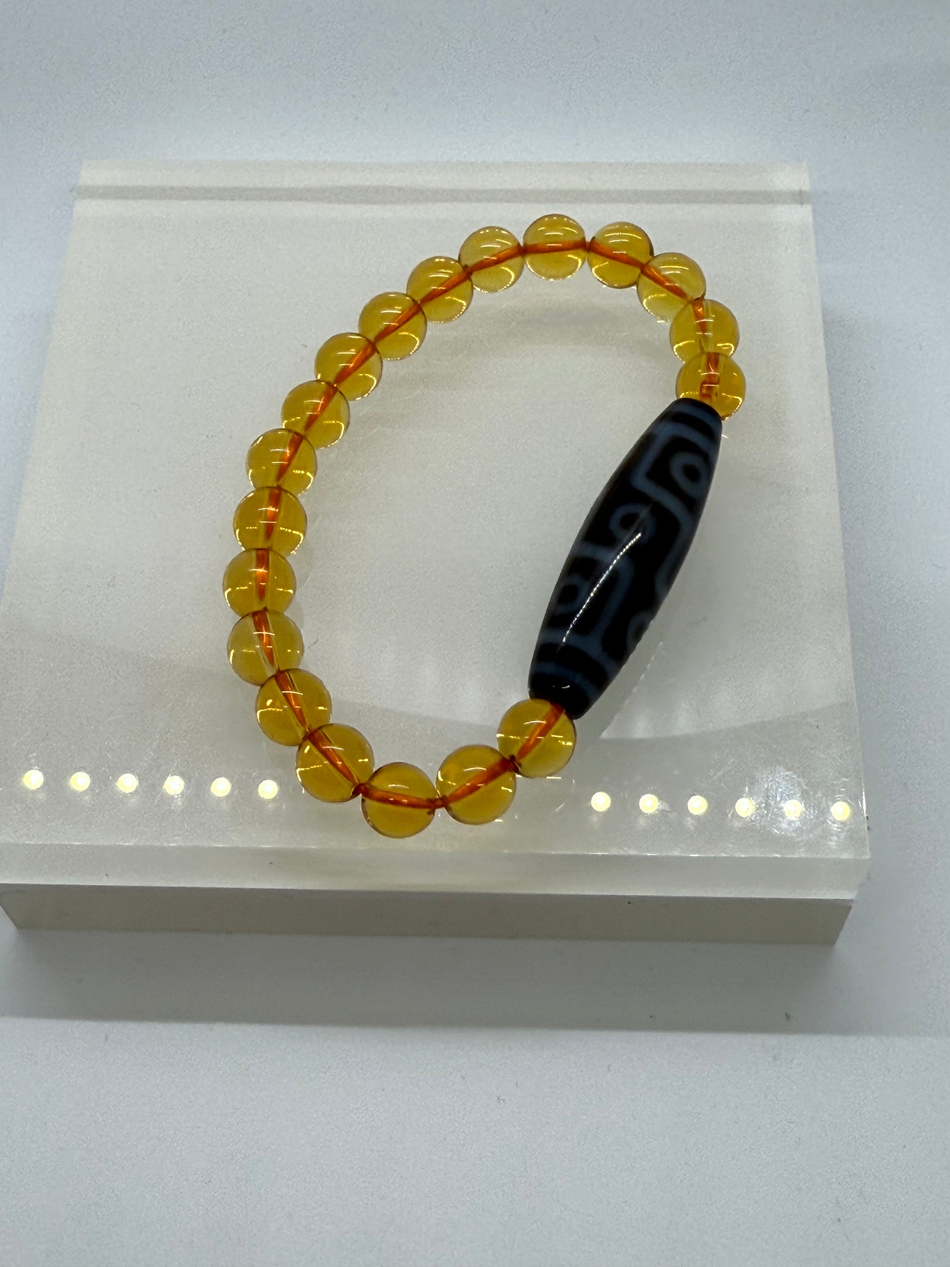 The 9 Eye Dzi set with Citrine beads helps to purify negative karma, dissolving all obstacles and blocks to success. This DZI will enable the wearer to gain power and influence and to enhance his/her reputation further. It also brings wealth and windfall luck to the wearer. Best suited to those born under Rabbit, Dragon, and Snake animal signs, but everyone wearing the powerful nine-eyed DZI will gain benefits.