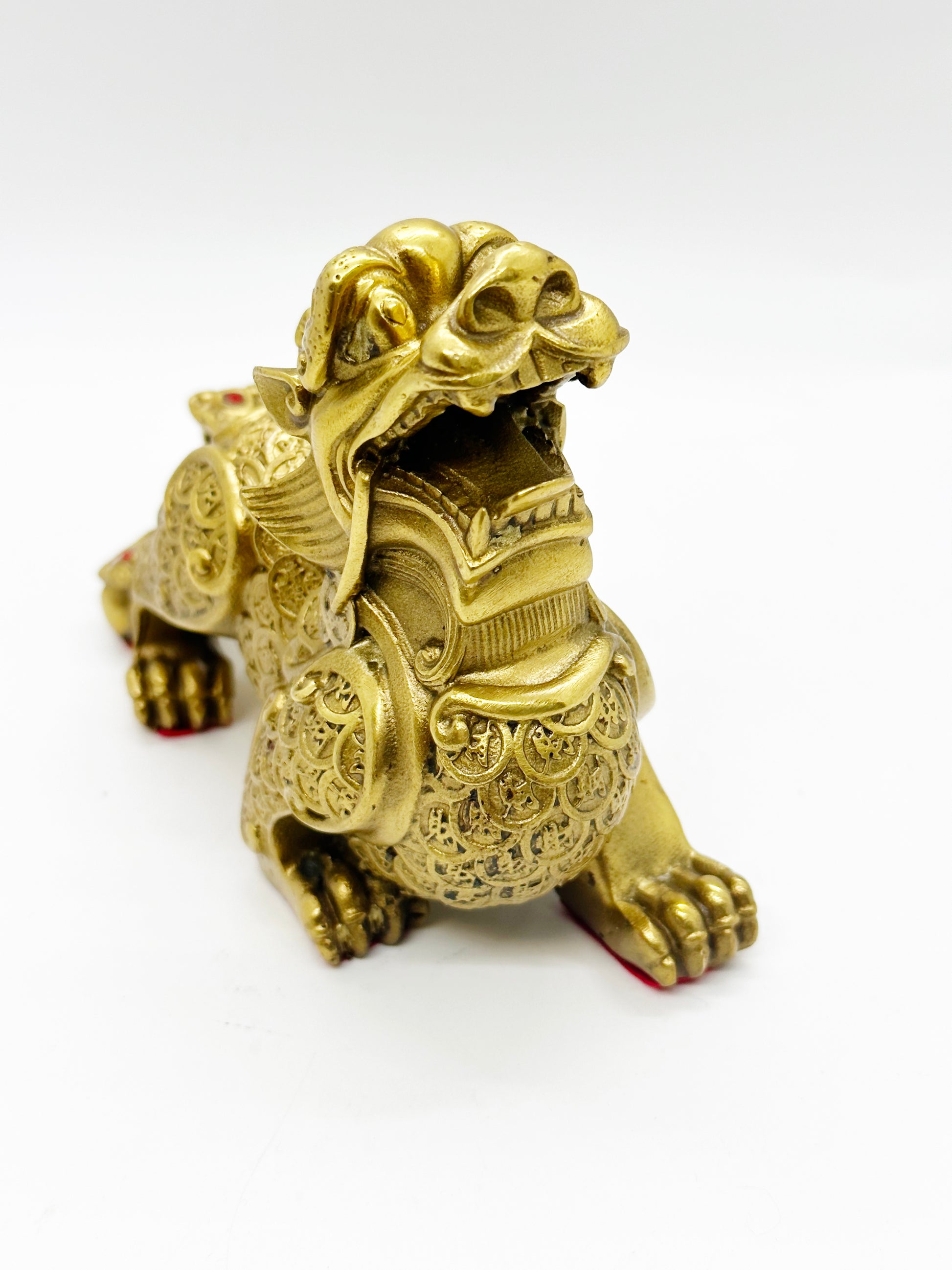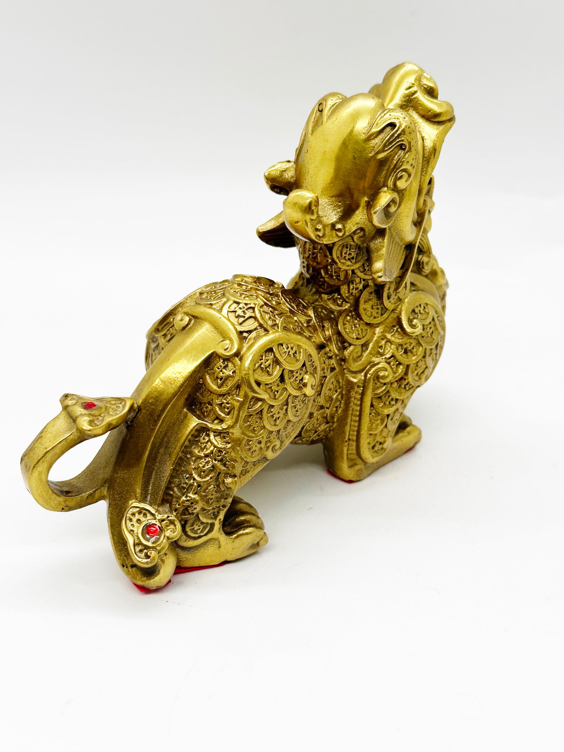 6686 - Brass Pi Xie with Coins - 5 Inches Height