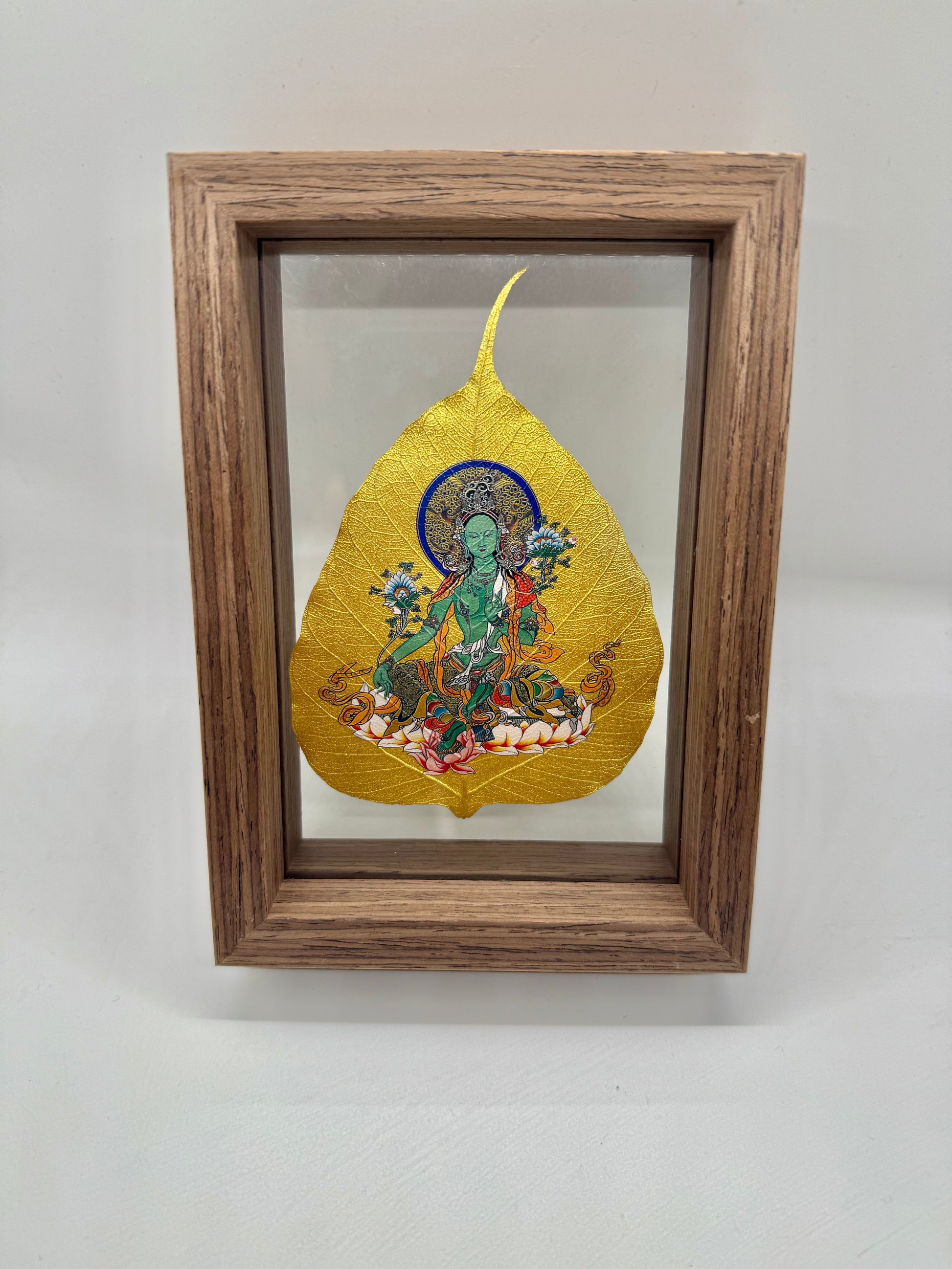 7064 - Golden Bodhi Leaf - Green Tara Frame 6 1/2 Height