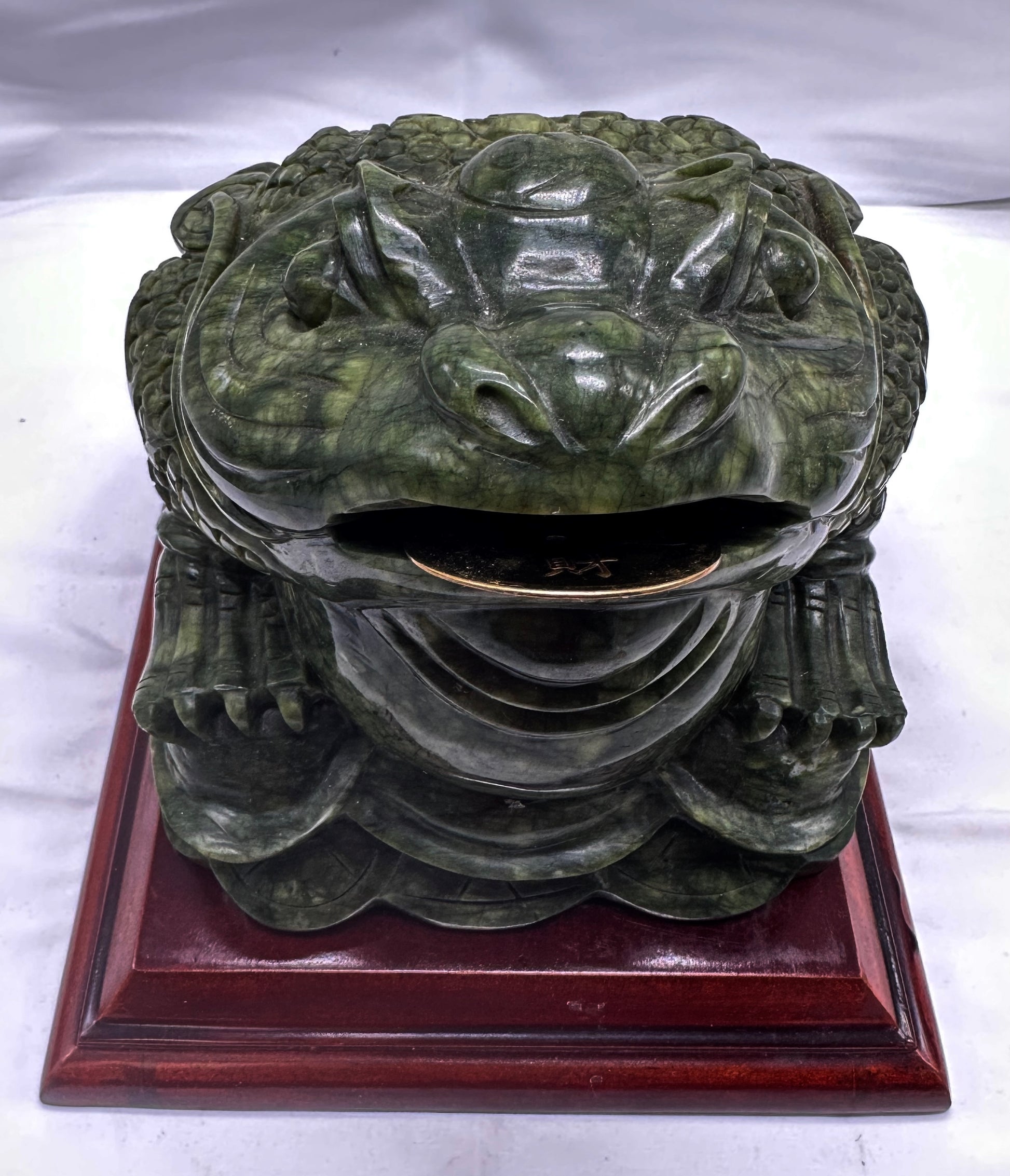 The 3-legged toad is a well-known symbol of wealth creation. According to an ancient legend, the 3-legged toad was caught using gold coins by Lui Hai, one of the eight immortals. It is often depicted sitting on a bed of coins to symbolize the meaning of wealth actualization. Place this stunning 3-legged toad on the floor with his head facing inwards as if coming in from your main door.