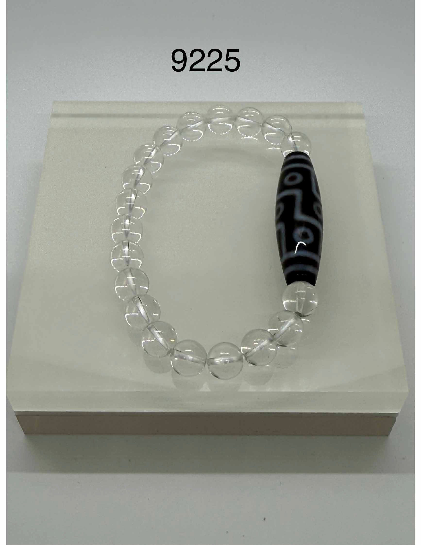 9225 - 9 Eye Dzi With 8mm Clear Crystal Beads Bracelet