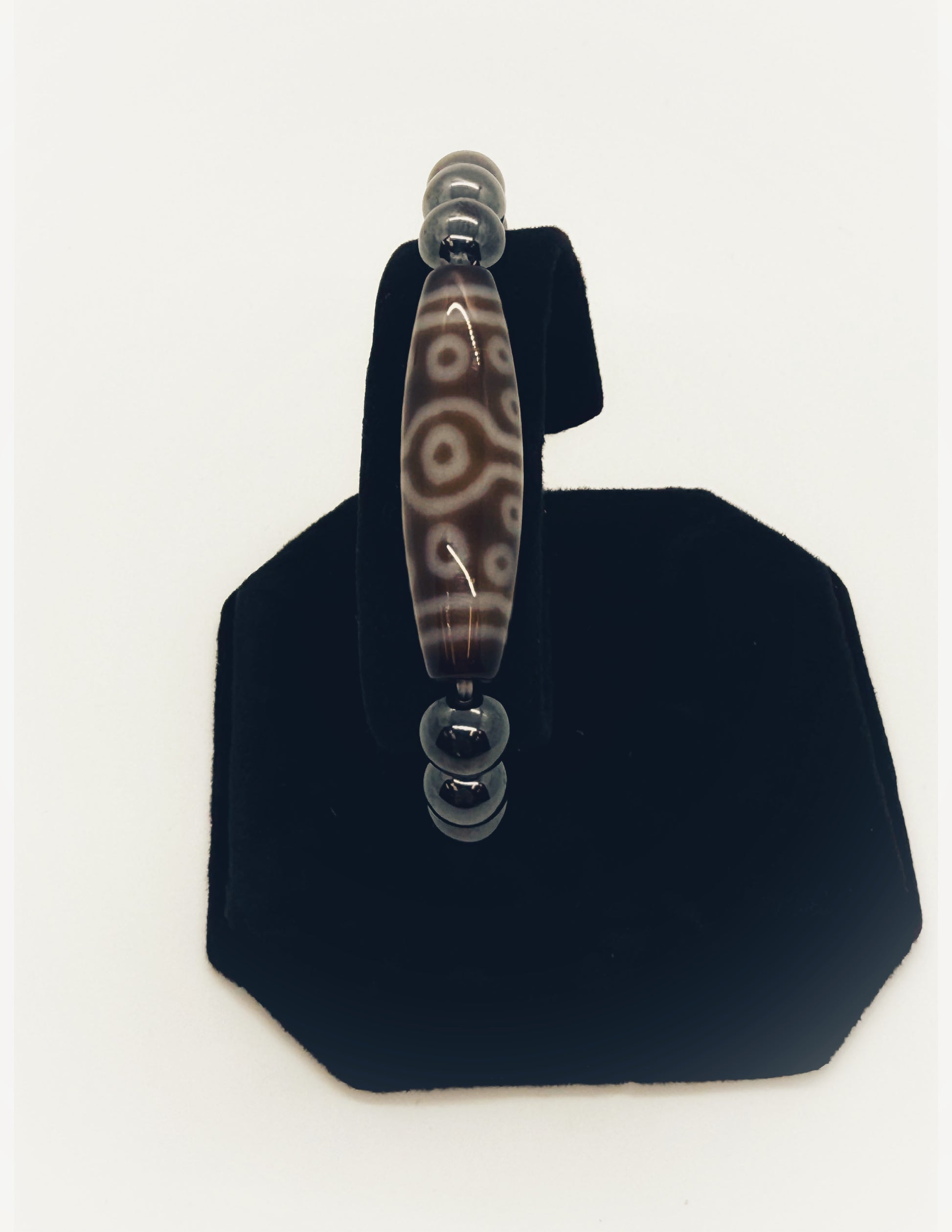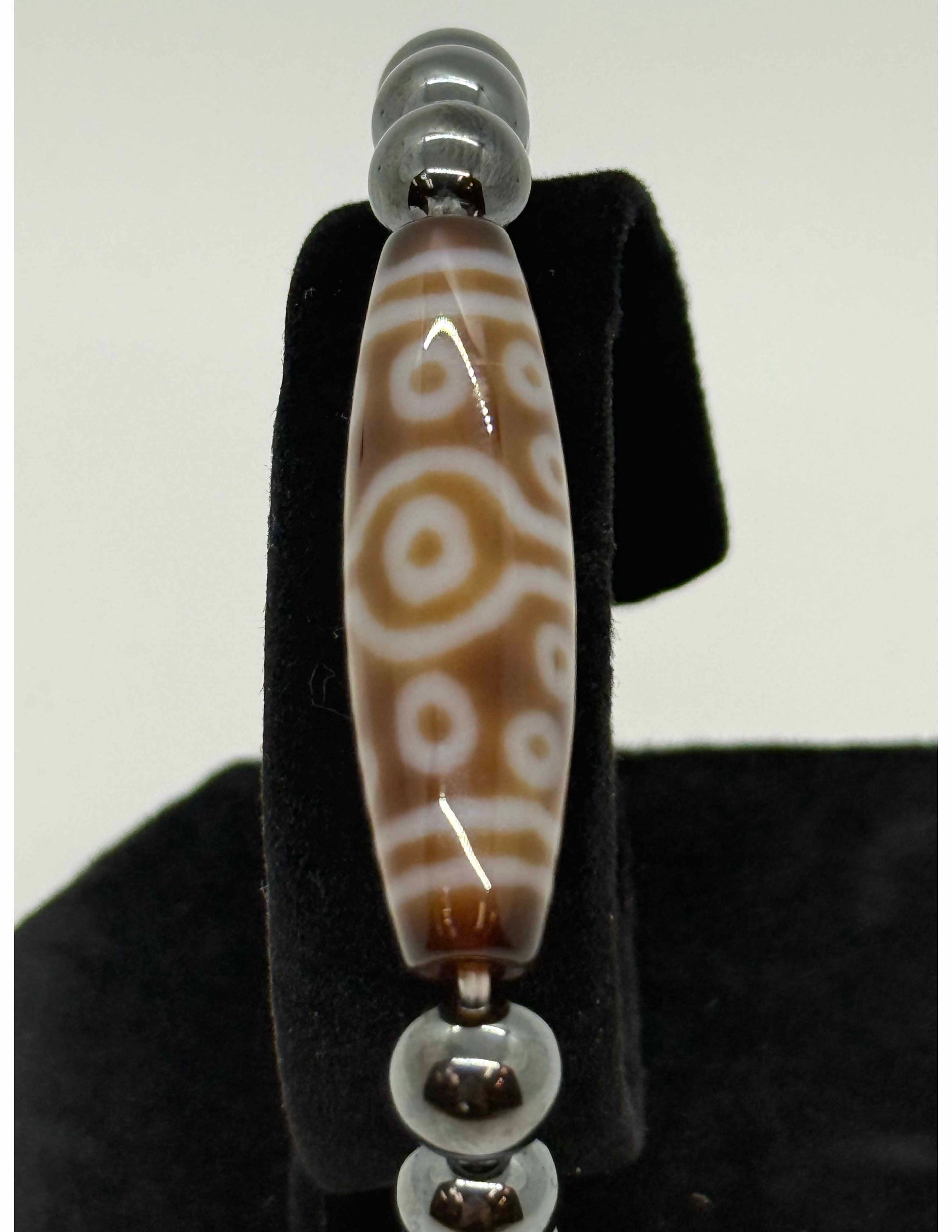 9354 - 15 Eyed DZI with 8mm Hematite Bracelet