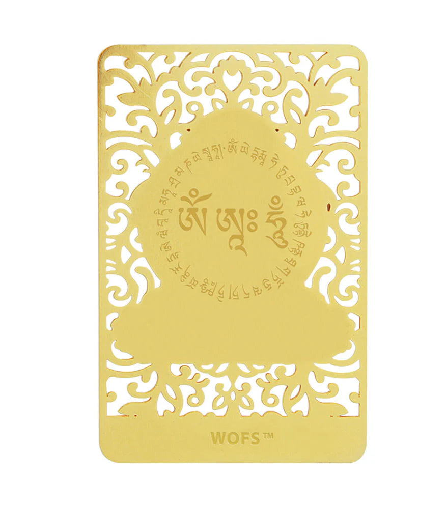Amitabha is a celestial Buddha of Infinite Light who heads the Lotus Family of Buddhas and the Pure Land School of Mahayana Buddhism. Amitabha possesses infinite merits from good deeds over countless past lives as a Bodhisattva named Dharmakara. Carrying this talisman in your wallet helps overcome bad luck and brings a smooth and peaceful life to those born under the Boar and Dog signs.
