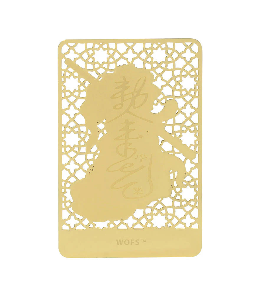 This golden wallet card features the God of Wealth with a Tiger and the Chinese talisman for good business luck and wealth. Carry to boost prosperity and profits, and to make good strategic decisions. Excellent talisman for entrepreneurs, businessmen, and those looking to make profitable deals.