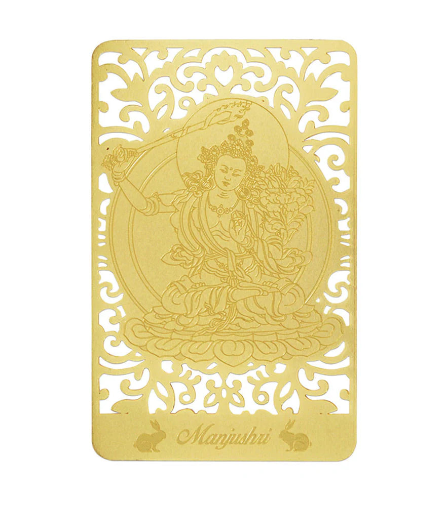 Bodhisattva Manjushuri is the Buddha of wisdom and awareness associated with scriptural texts and definitive branches of Buddhist philosophy. He brings realizations and opens one's wisdom mind, and is the Bodhisattva of the Rabbit. Carrying this talisman in your wallet brings education and marriage luck to Rabbit born and helps dispel all material problems.