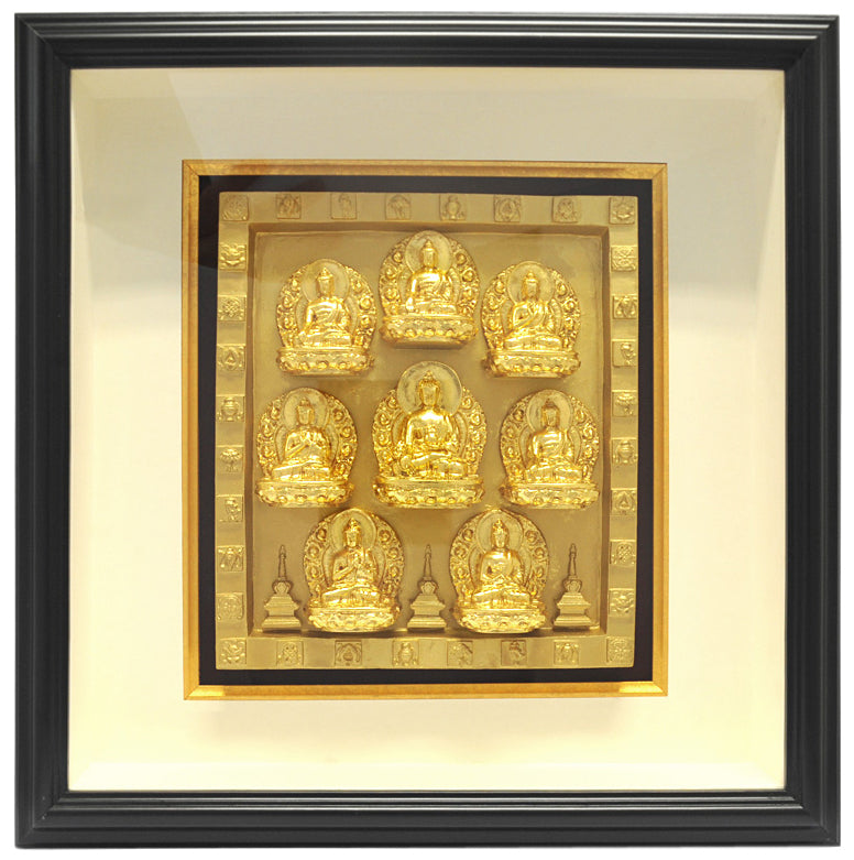 This special Buddha frame invokes the powerful protection of Medicine Buddha, the Deity that comes to the aid of anyone with health obstacles in their life. You should be empowered with Medicine Buddha’s mantra: TADYATHA OM BHEKHANDZYE BHEKHANDZYE MAHA BHEKHANDZYE (BHEKHANDZYE) RADZA SAMUGATE SOHA.