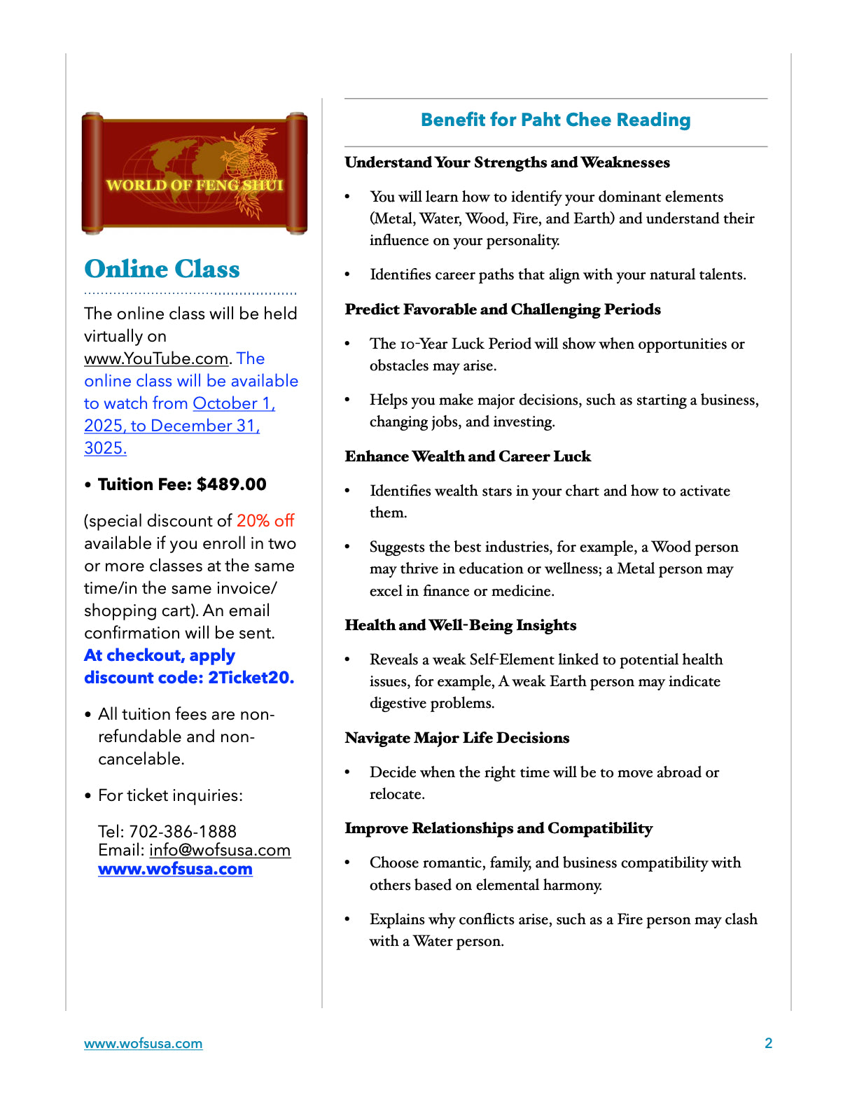 (special discount of 20% off available if you enroll in two or more classes at the same time/in the same invoice/ shopping cart). An email confirmation will be sent.