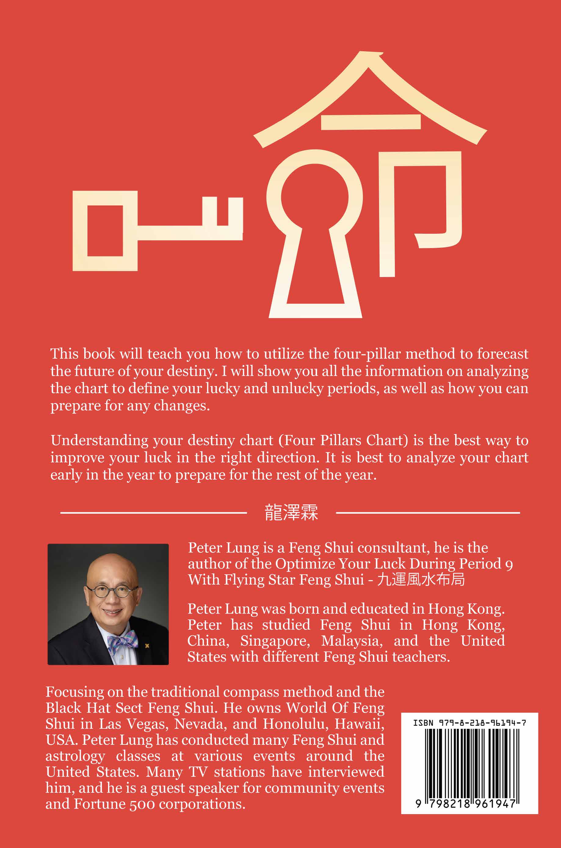 This book will teach you how to utilize the four-pillar method to forecast the future of your destiny. I will show you all the information on analyzing the chart to define your lucky and unlucky periods, as well as how you can prepare for any changes.